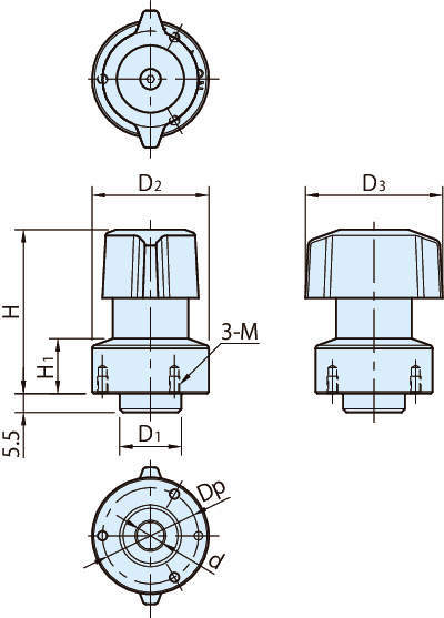 | ノブ | QCPCS:ポリアミド(ガラス繊維強化) ブラック QCPCS-SUS:SCS13(SUS304相当) |