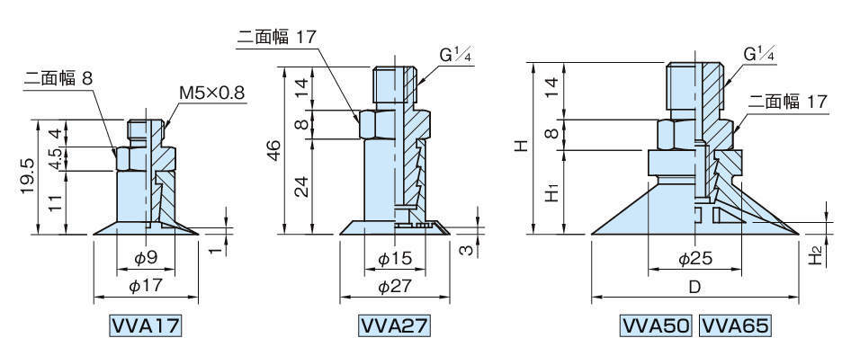 | VVA17-S-M5 | シリコーン | 寸法図参照 | 寸法図参照 | 寸法図参照 | 寸法図参照 | 0.2 | 4 |