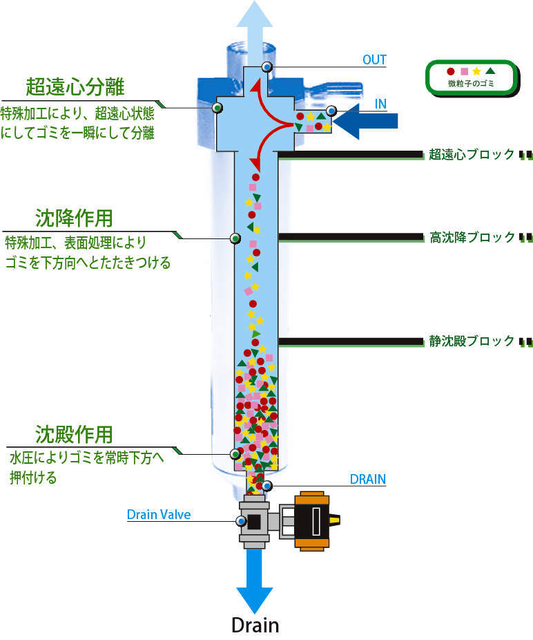 ・エレメントが一切存在しないエレメントレスフィルターであるFILSTARはこの様な悪循環、コスト増大を改善いたします。