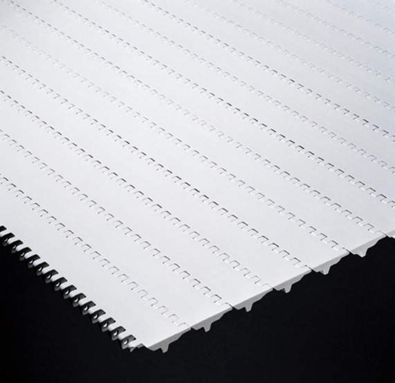 イントラロックスのベルトは、全て射出成型のプラスチックモジュール製です。プラスチックモジュールとヒンジロッドで構成された、プラスチック製スプロケットで動くこのベルトには、工場の操業や設計に求められる耐腐食性、確実な駆動、高強度、低摩擦性、耐摩耗性といった特性を、基本的に備えています。イントラロックスのベルトは、これらの特性に加え、その優れた設計により、衛生管理に優れ、保守・管理時間が短縮され、修理も早く簡単です。