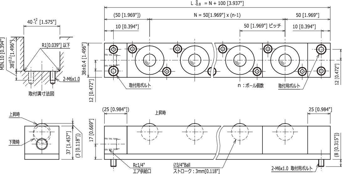 ・各ボールトランスファーは独立したシリンダブロックで構成しており、これを連結していますので50mm ピッチで長さを選択することができます。