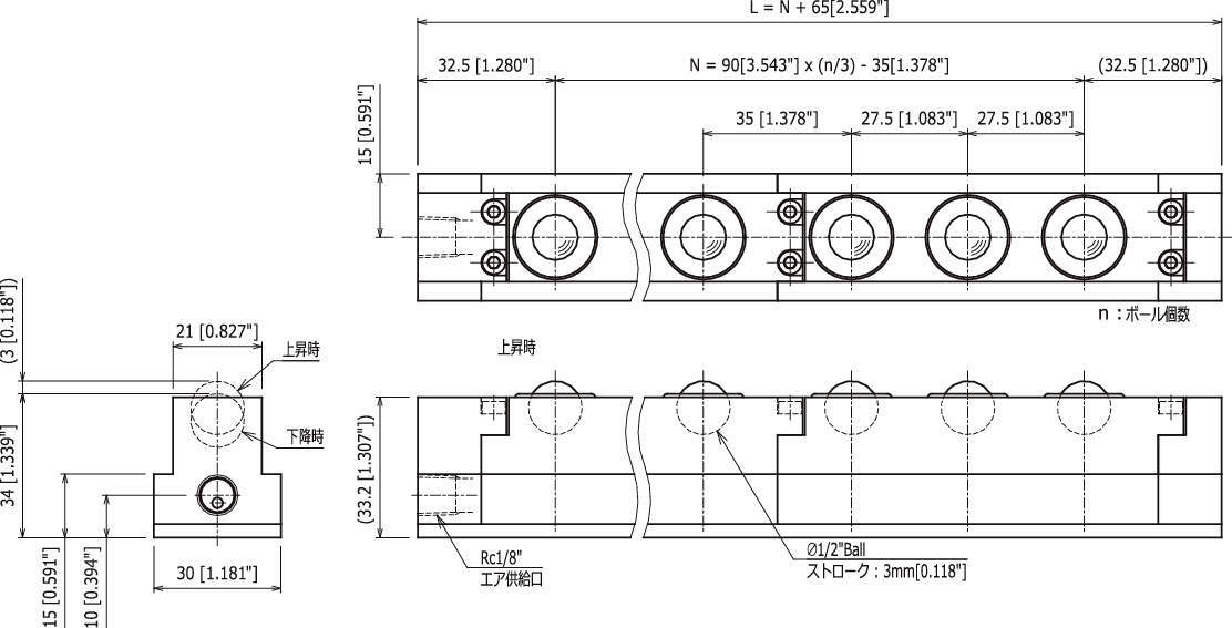 ・各ボールトランスファーは独立したシリンダブロックで構成しており、これを連結していますので50mm ピッチで長さを選択することができます。