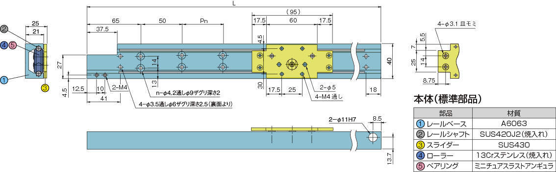| レールシャフト | SUS420J2(焼入れ) |