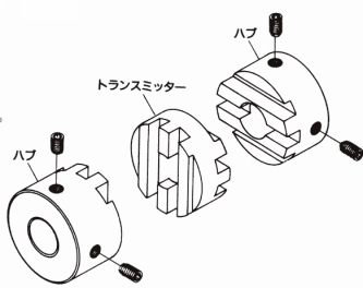 ・2つのハブ部材および中間のトルク伝達部材の3部品で構成されています。組み立てや中間トルク伝達部材の交換も簡単です。
