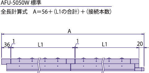 | 連結計算式 | (全長)=56+(表中L1の合計)+(接続本数) |