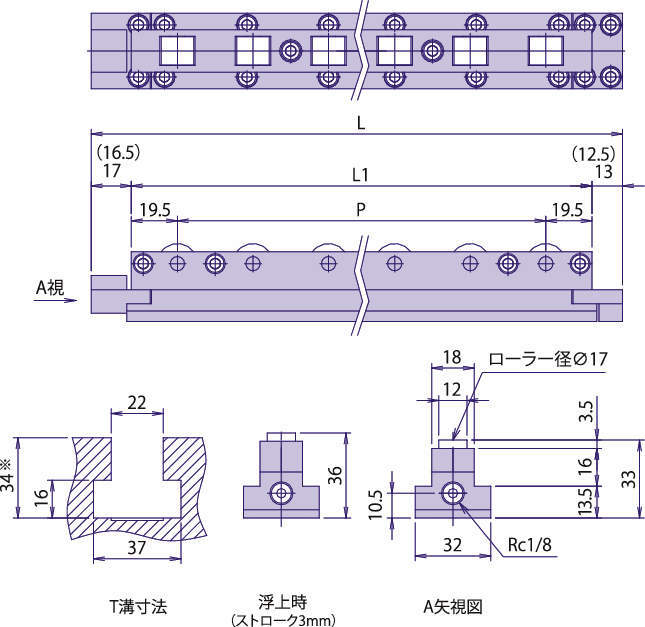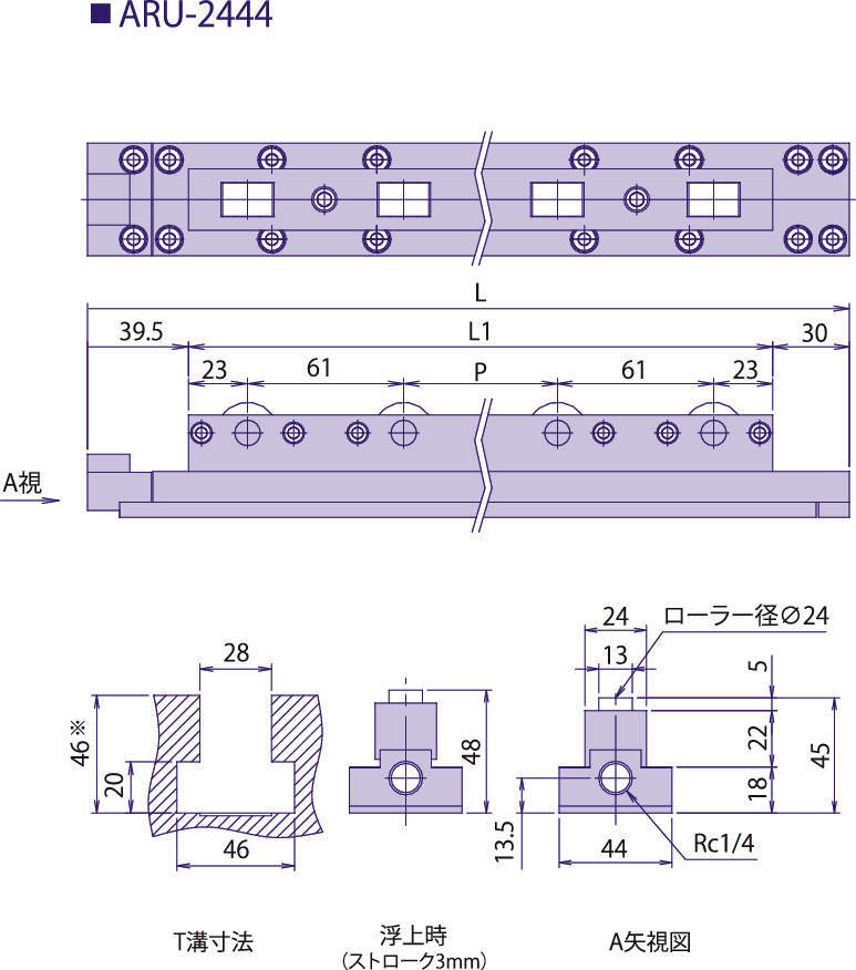 | 連結計算式 | ARU-1832シリーズ:(全長)=25+(表中A1の合計) ARU-2444シリーズ:(全長)=24.5+(表中A1の合計) ※同じシリーズ同士の連結のみ可能。1832シリーズと2444シリーズは連結することができません。 |