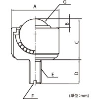 | 型式 | 許容荷重 | メインボール | 小ボール | 本体 | 自重 | A | B | C | D | E | F | G |
