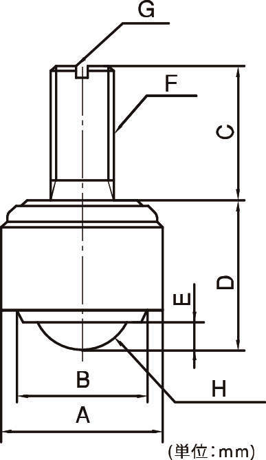 | 型式 | 許容荷重 | メインボール | 小ボール | 本体 | 自重 | A | B | C | D | E | F | G | H |