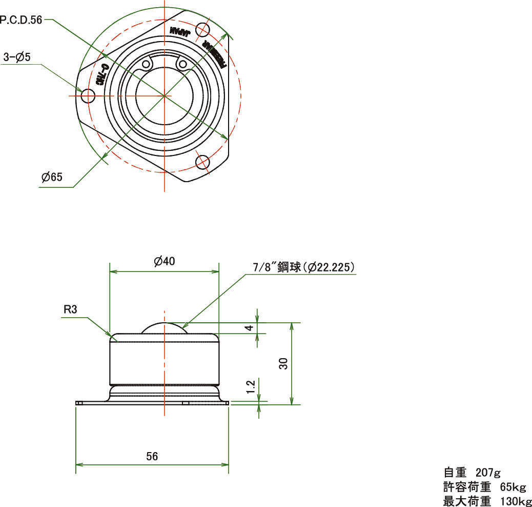 金属製フランジと切削加工品のボディなのでとっても丈夫。
