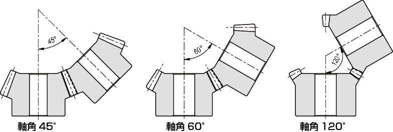 ・軸角 45°、60°、120°で使用できる 3 タイプのアンギュラマイタです。