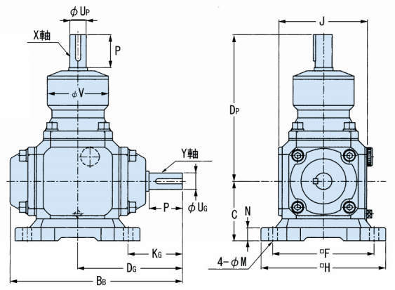 ■CBXベベルボックスは、軸の出る方向・回転関係により24通りの軸配置の製品を標準化しています。