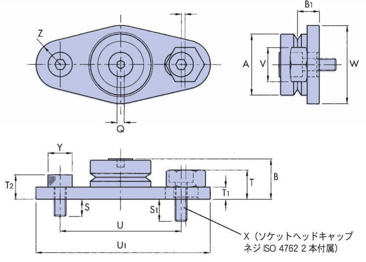・反対側からのボルト締めができない箇所では、2 本のボルトで取付面に直接固定