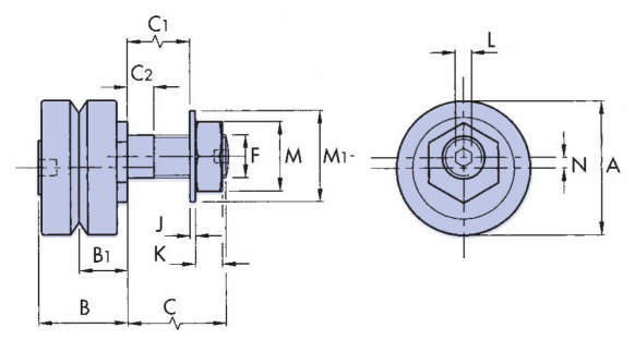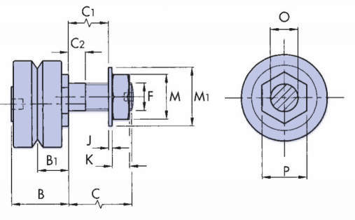 ・ブラインドホールタイプのベアリングは、ベアリングの背面から固定できないときに使用するもので、基準位置に配置する固定型と、システム調整が簡単に行える偏心型を用意してあります。