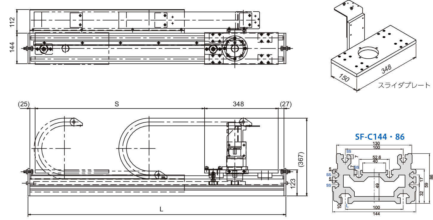 | ストローク:S(mm) | RU-800-□:800 RU-1300-□:1300 RU-1800-□:1800 RU-3800-□:3800 |