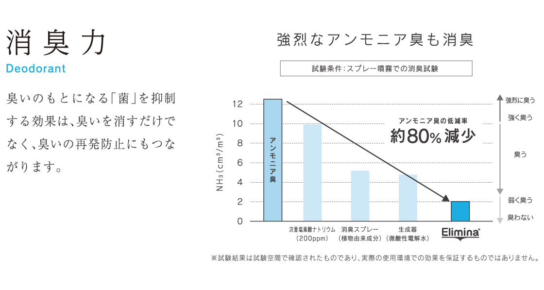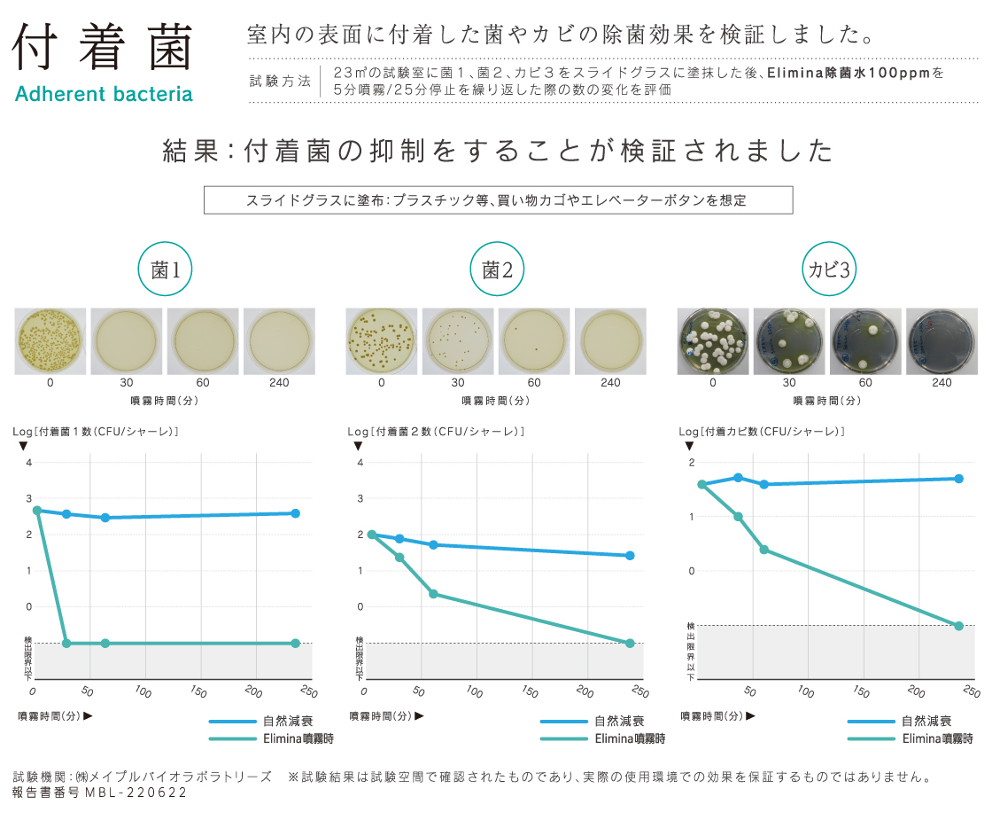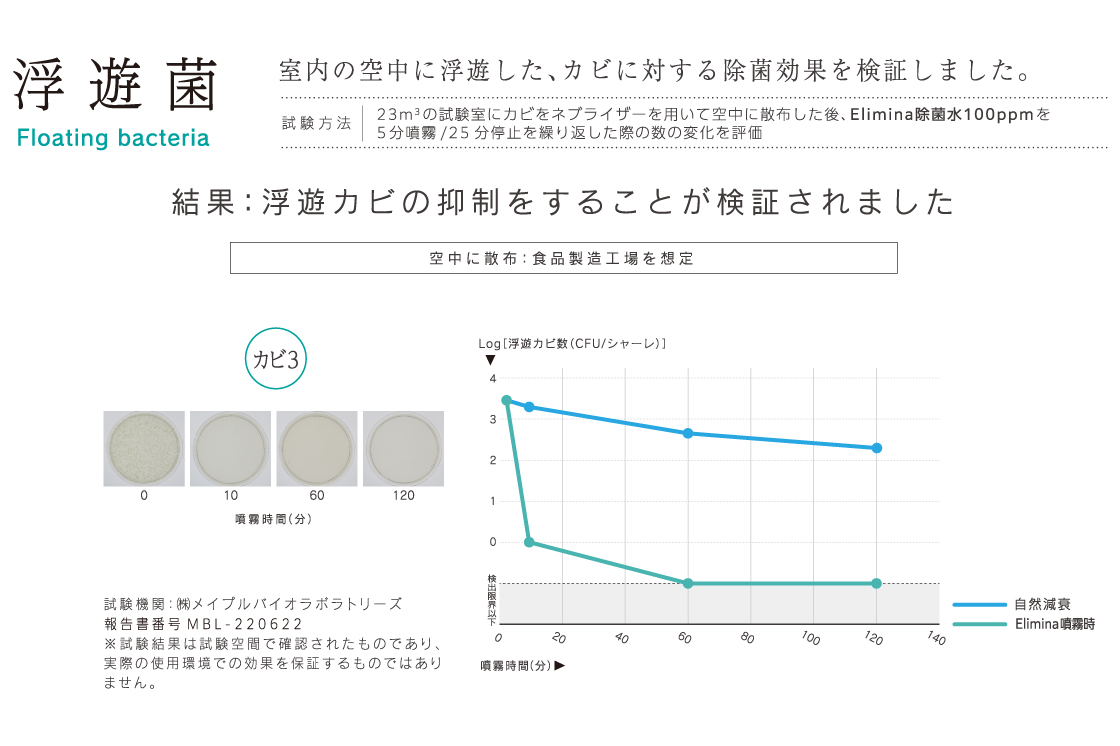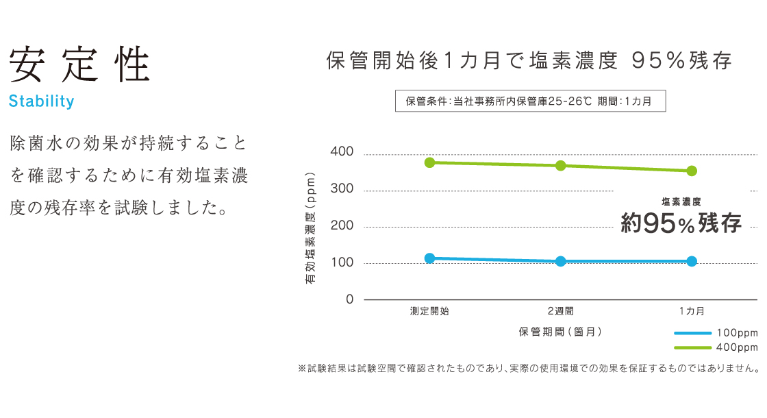 外部・内部から酸化作用をおよぼすため、高い除菌力を持っています。【 試験結果 】