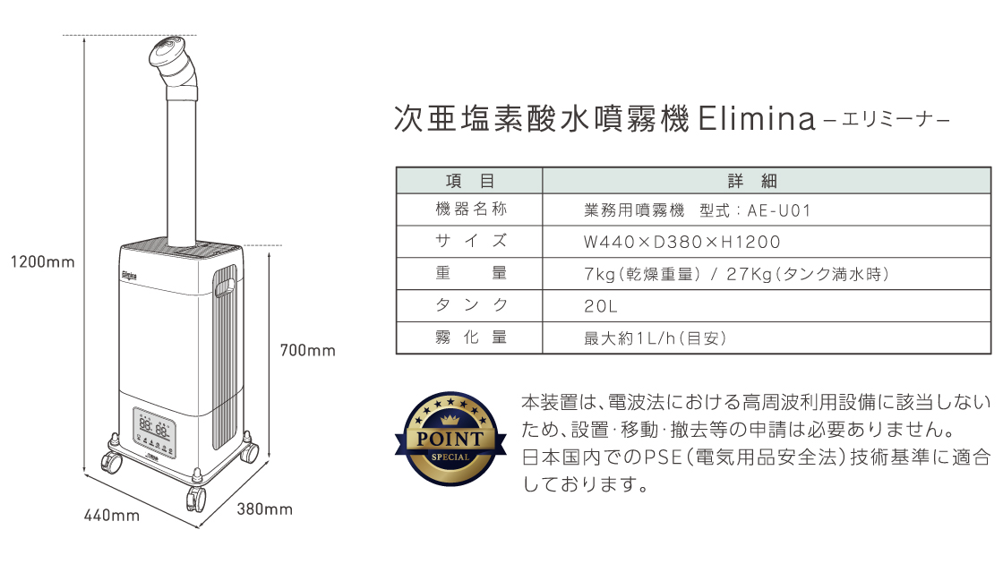 次亜塩素酸水 噴霧機 Elimina(エリミーナ)