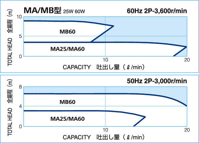 最大全揚程 MA:3m/3.5m(50Hz/60Hz)