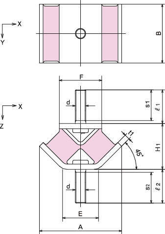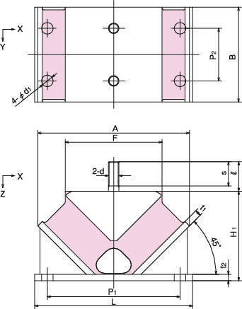 ・ゴムを傾斜配置に用いて、複雑な振動系の防振支持に適すように設計しています。