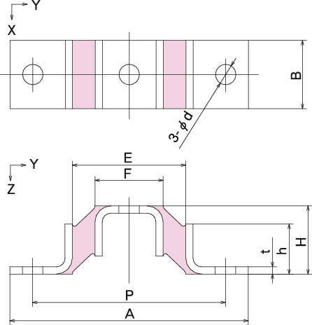 ・長手方向の剛性が大きいので、その方向に大きな荷重が働く機器の防振にも比較的安定が得られます。
