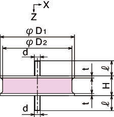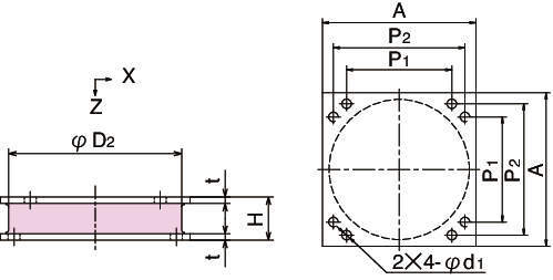 | D1 | D2 | H | t | d | l | A | P1 | P2 | d1 | Z方向 | X方向 | ||||