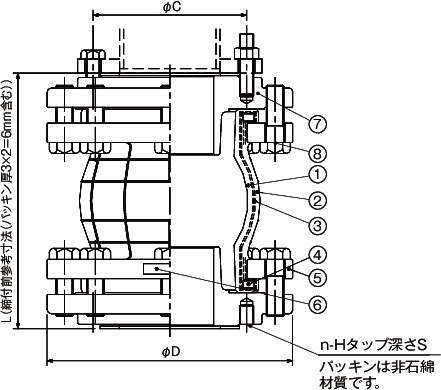 L D C n H S 取付面間 偏心e 縮み(mm) 伸び(mm) 偏心(mm) 偏角(°)