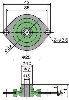 ・荷重をやわらかく受けられるため、軽量機器にも防振効果を発揮します。