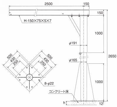 | NPM25 | ピラー形ジブクレーン | H形 | - | 250 | 2.5 | 2.5 | 360° | - | - | - |