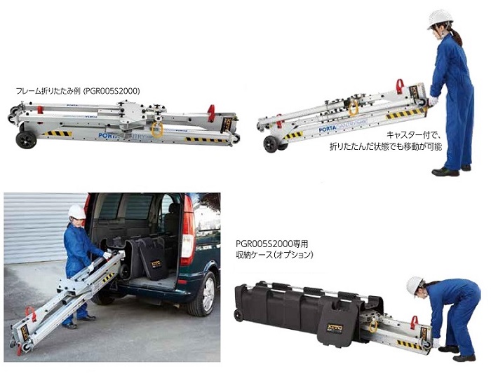 ・キトーポータガントリー「PG RAPIDE(ラピード) type」は、折りたたみ式のアルミ製ポータブルクレーンで、組立・設置がとても簡単!