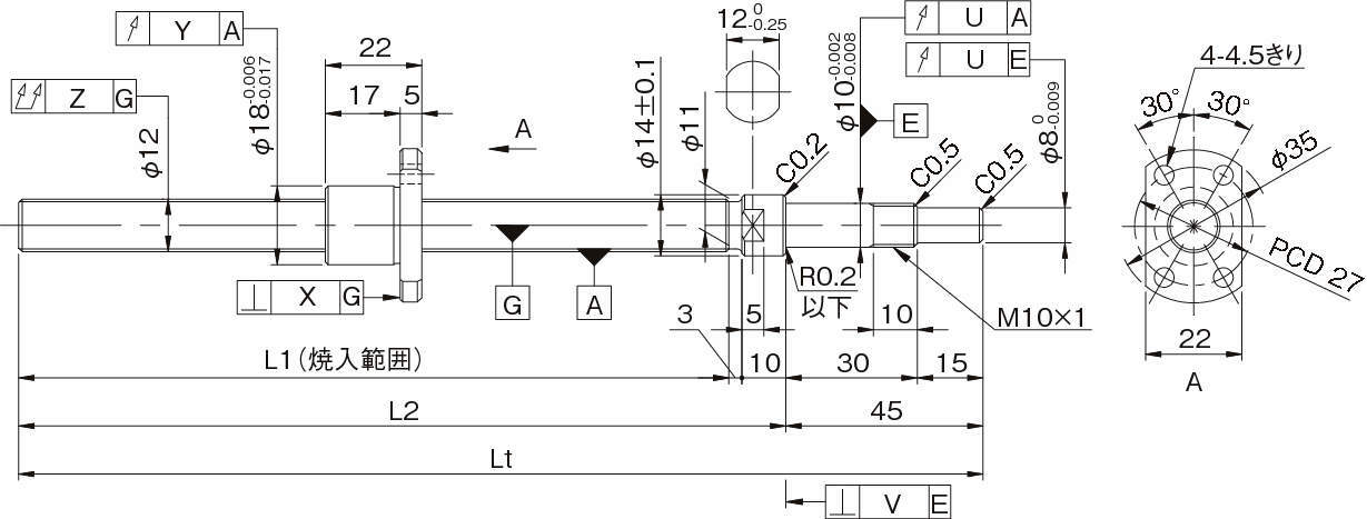 ・多条ねじを採用し、ナット長さのコンパクト化と定格荷重に配慮しました。