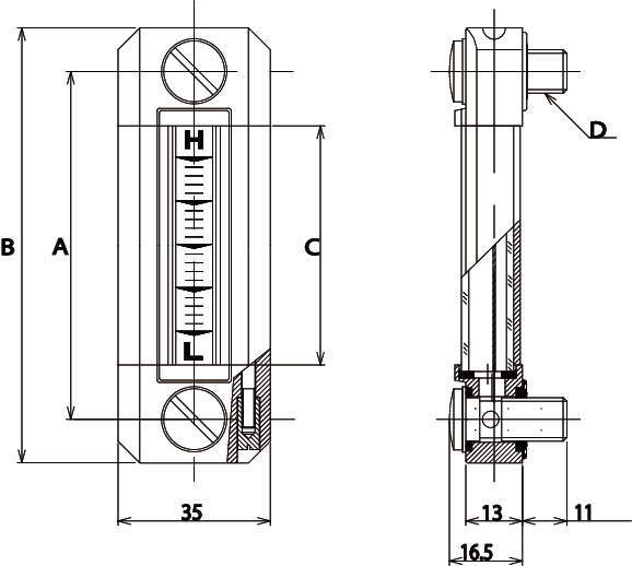 ■ゲージ管にパイレックスガラス、シール部にフッ素ゴムを使用しています。
