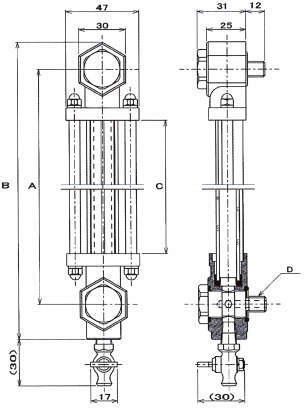 ■KLM-K型オイルゲージは、金属製オイルゲージKLM型シリーズのPコック付のオイルゲージです。