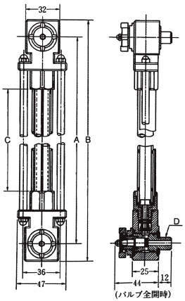 ・本体にバルブがコンパクトに設計されていて、万ーゲージ管が破損した場合には、自動的にバルブ機構が慟き、油漏れを防ぎます。