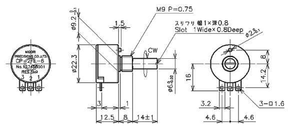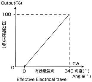 | 電気的仕様 | ・有効電気角:340° +2°、-3° ・単独直線性:±2% ・出力スムーズネス:0.1%Vin以下 |