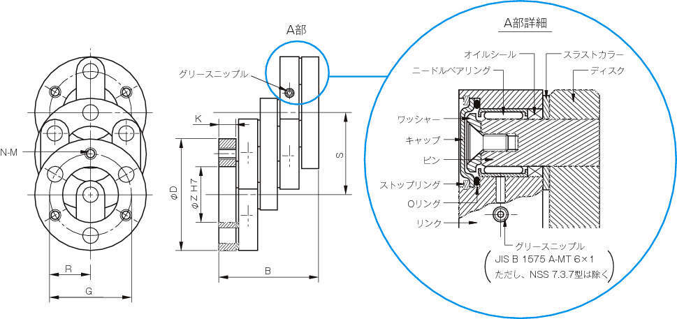 ・NSSモデルについては、単に軸心違いでの動力伝達が可能なだけでなく、回転中の軸の平行移動も広範囲で可能です。