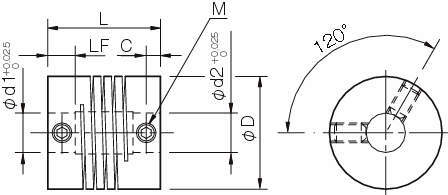 ・円柱状の材料に1本の螺旋状のスリットを入れた完全一体構造の金属カップリングで、バックラッシがありません。