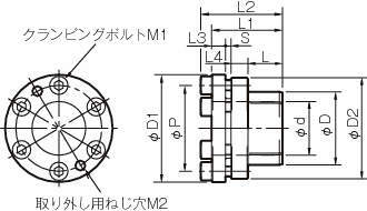 ・テーパによるメカタイプの軸ロックで、クランピングボルトの締め込みによりテーパ面のくさび作用で軸とハブは完全に締結されます。