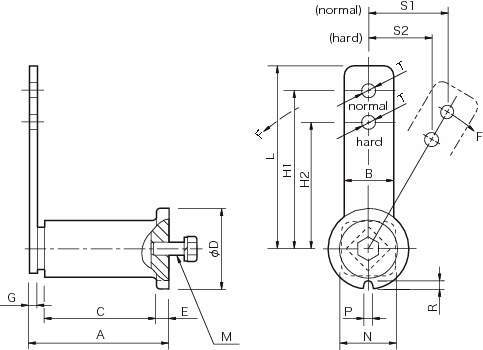 ・使用荷重範囲によってアイドラーの取り付け穴を選択することができるので、広い荷重範囲に対応できます。