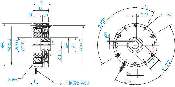 ・励磁作動形とは、コイルへの通電を行うことで動作するクラッチ・ブレーキで、無励磁作動形とは、停電時などコイルへの通電が切れたときにスプリングの力で動作するブレーキを指します。