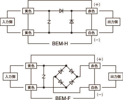 ・BEM-2H・4Hタイプは、商用電源を入力し、出力側に半波整流された直流電圧を発生させます。
