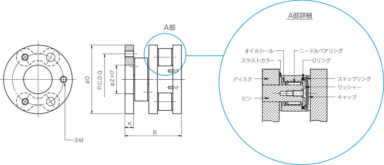 ・一方のエンドディスクに入力された動力は、リンクとセンターディスクを介して他方のエンドディスクに伝達されます。