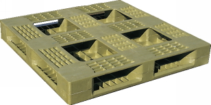 ・自動倉庫ではスタッカークレーンでパレットを下部よりすくい取る機構となっているため、パレットの左右両端のみで支持する「二点支持ラック構造」となっています。したがって、クリープ現象が発生し、このたわみ量が一定量を超えるとスタッカークレーンにパレットがぶつかり、トラブルとなるため、自動倉庫用パレットには高いクリープ性能が要求されます。一般的にはクリープによるたわみ量を10mm以内に抑えることが求められています。