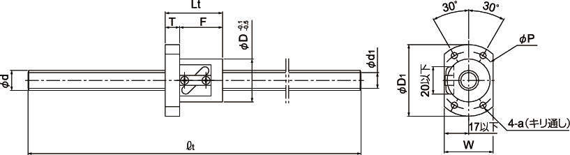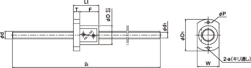 | ねじ軸 | 材質:S55C 硬度:HRC56~ 表面処理:MV なし、MY リン酸塩皮膜 |