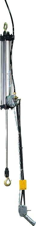 ・ホイストと同じように操作ハンドルのレバー又は押釦操作によって吊上げ物を上昇・下降できるほか、バランスレバーを切り換えると空気圧の自動制御により吊上げ物を無重力に近い状態に保つことができます。