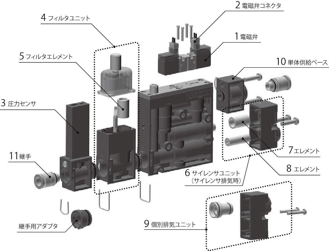 封止弁 チェック弁 フィルタ 排気方式 供給空気
