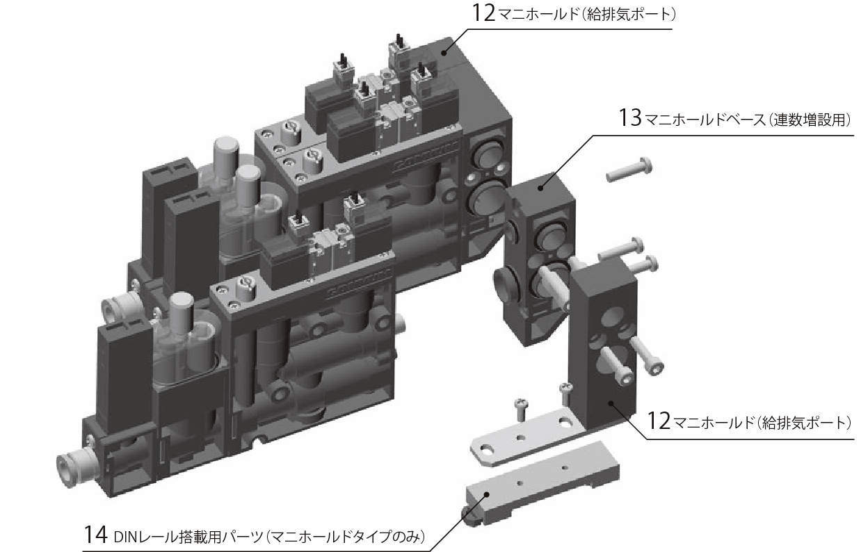 供給圧力最小0.25MPaで稼動。フレキシブルな組み合わせ選択が可能。