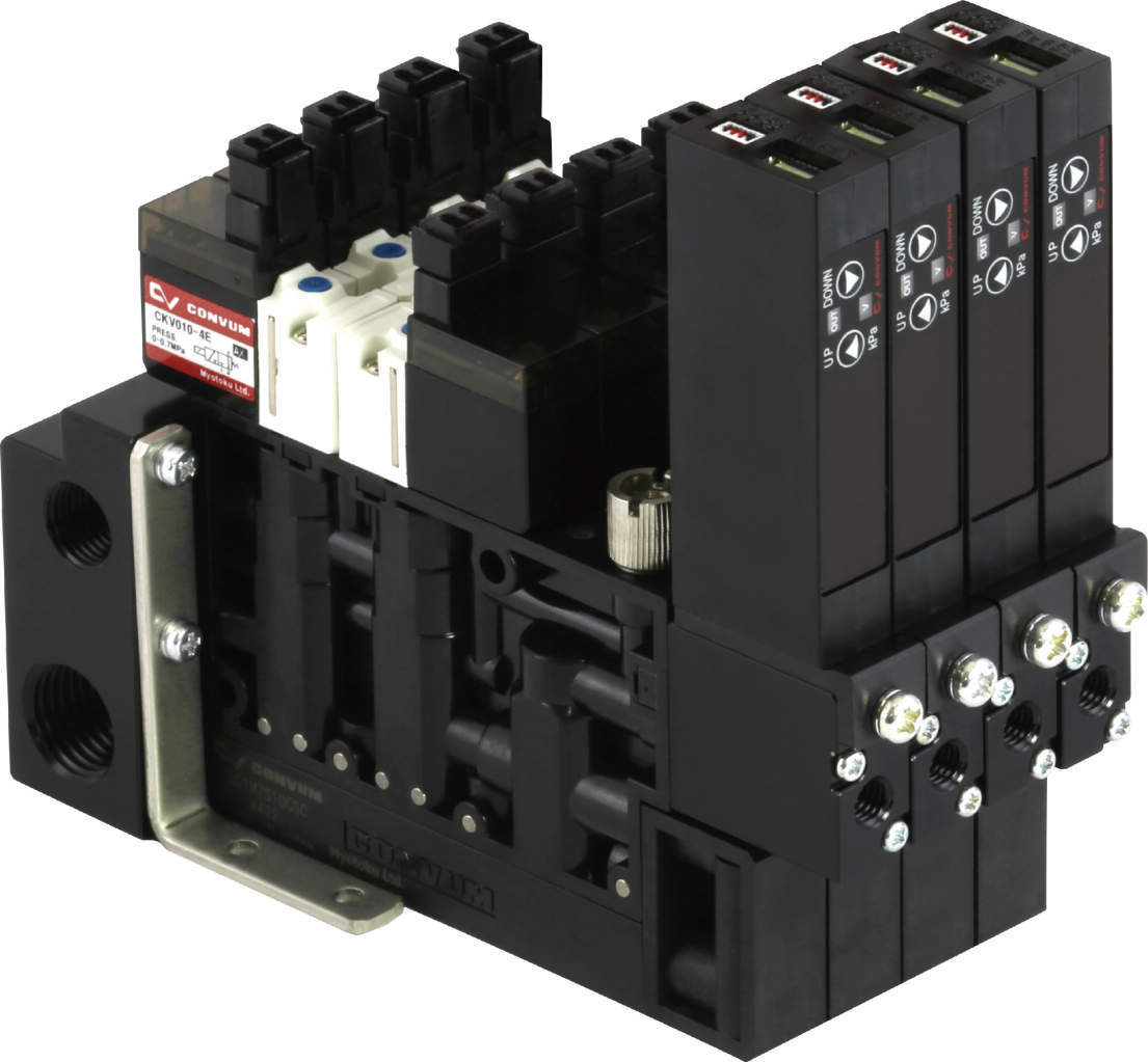 ・コンバムとは圧縮空気を利用して真空(負圧)を発生させる真空発生機器です。