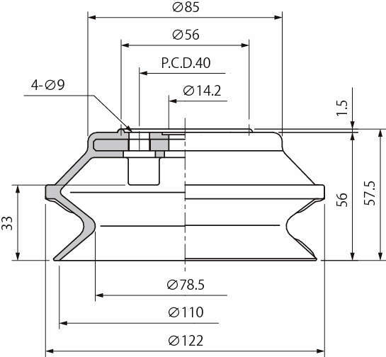 | PBG-75-N | PB(PBG) | パッド単体 | 75 | φ75 | - | NBR(二トリルゴム) | - | - | - |