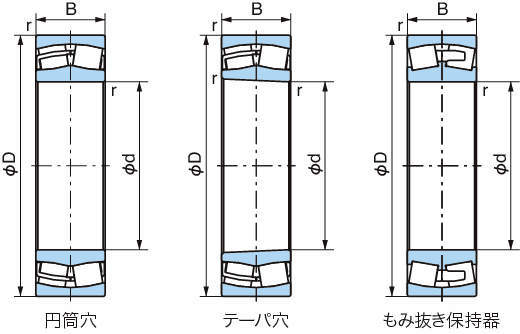 | 21306E | 21306 | 円筒穴 | 30 | 72 | 19 | 83000 | 62500 | 5300 | 6600 | プレス保持器 |