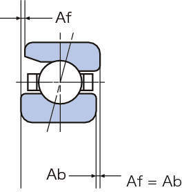 ・フラッシュグラウンドアンギュラ玉軸受は、正面側差幅(Af)と背面側差幅(Ab)が同じとなるようにあらかじめ調整されており、どの組合せ方式においても所定の予圧が得られるようになっています。