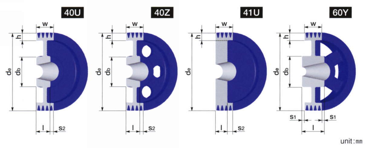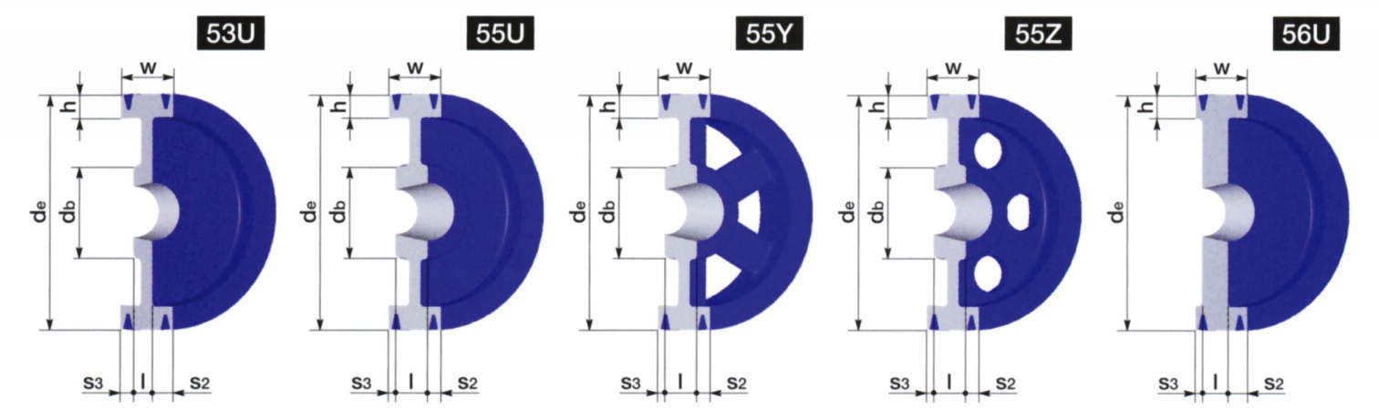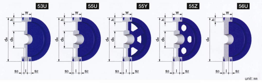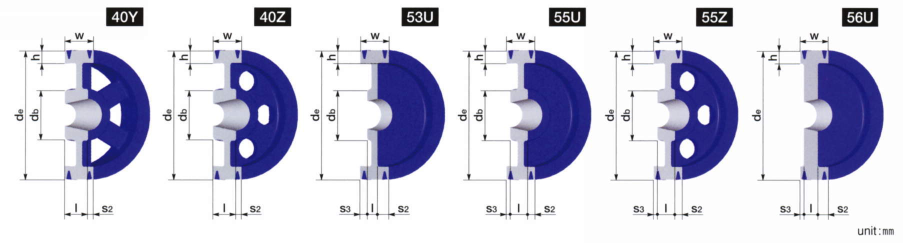 適用ブッシング | 形状図番 | 溝本数 | ハブ (mm) | リム (mm) |